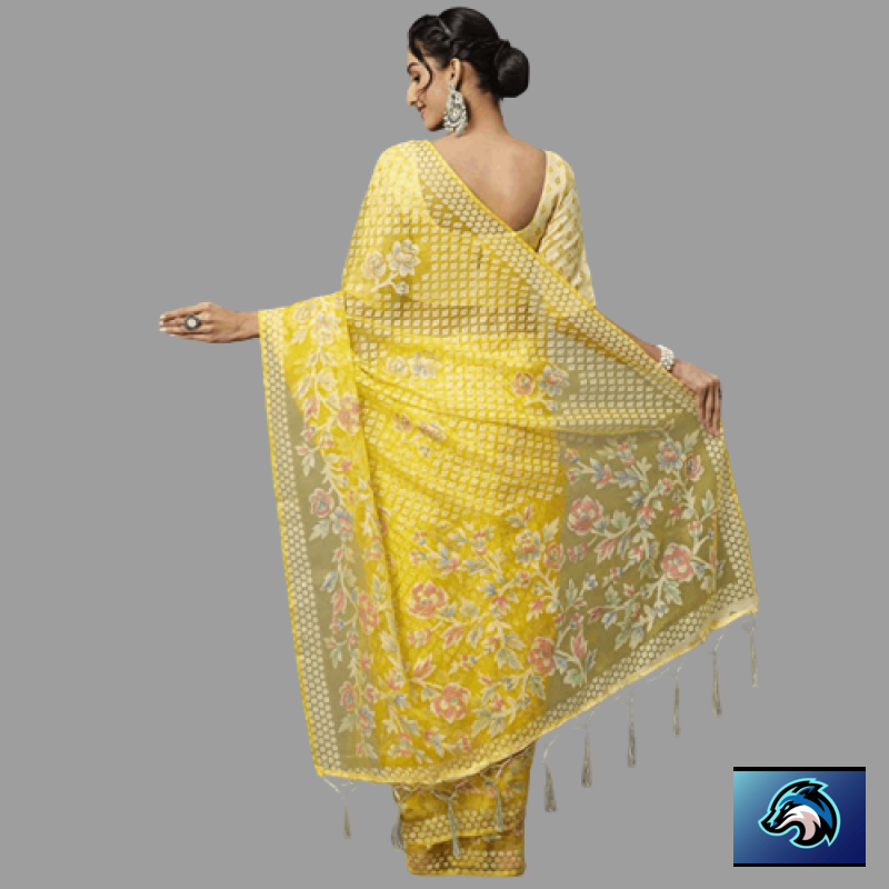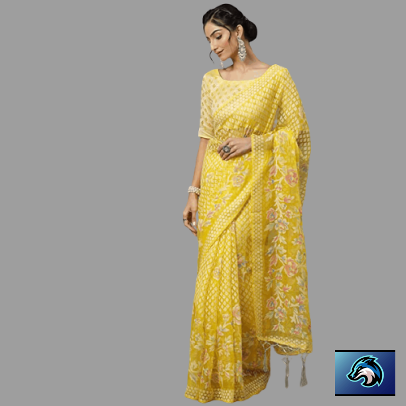 AKHILAM المرأة براسو المطبوع بالزهور شاندري ساري مع قطعة بلوزة غير مخيط