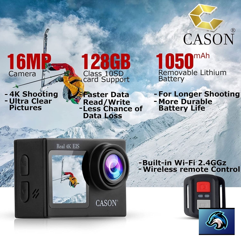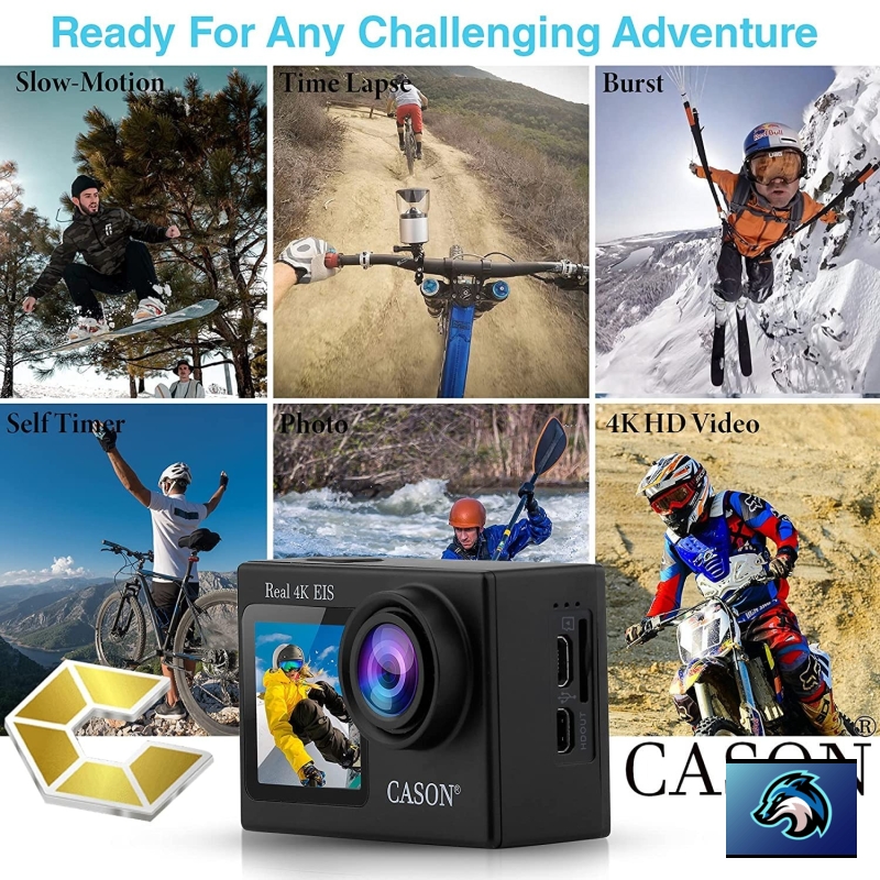 CASON CS6 Real 4K كاميرا رياضية مزدوجة الشاشة مقاومة للماء