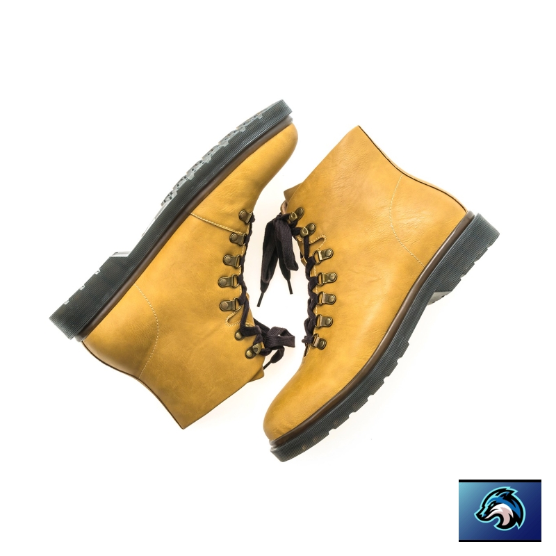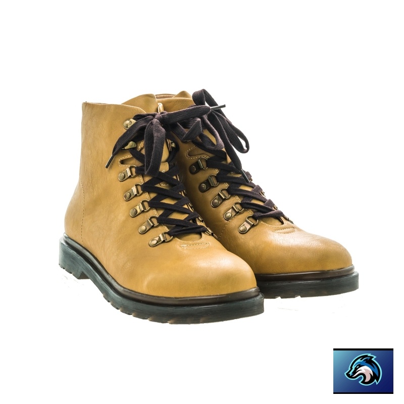 زوج من الأحذية ذات الكعب البني ، لديه الكاحل العادي والأربطة