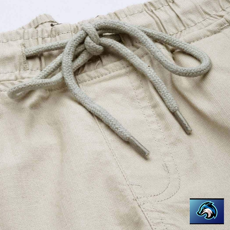 بنطال رياضي أبيض صلب متوسط الارتفاع، برباط تضييق للإغلاق، أربعة جيوب