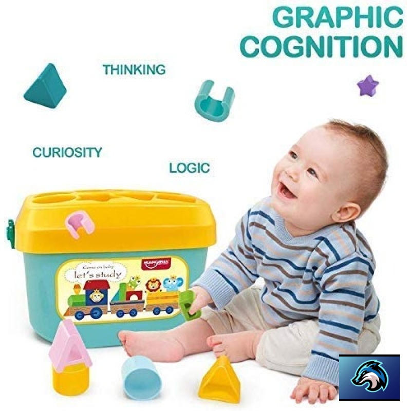 • Perfect interactive educational toy for for 1 year old and up; SHAPE SORTER BOX TOY: It comes with 16 shaped multiple color blocks.