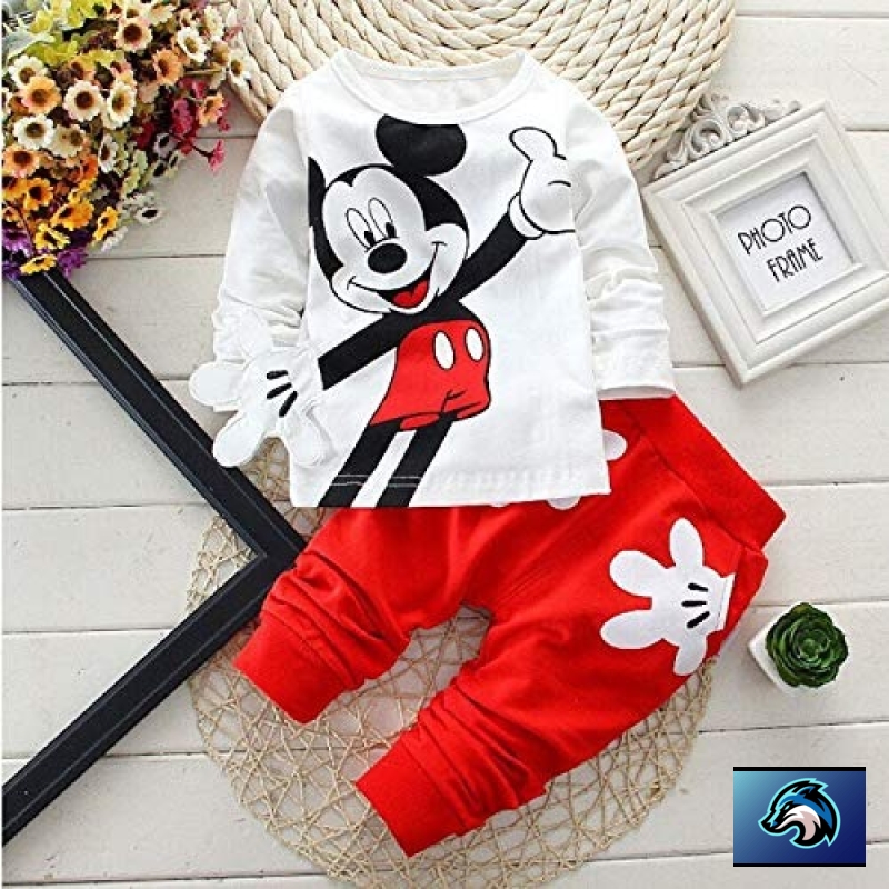 • Get this stylish latest mickey mouse cartoon clothing set home today! It’s got fun cartoon graphics, an easy-to-use pull on opening and bright colors. It’s the kind of dress kids can just chuck on without thinking because it does the job in most situations. This is a proper all-round clothing set.