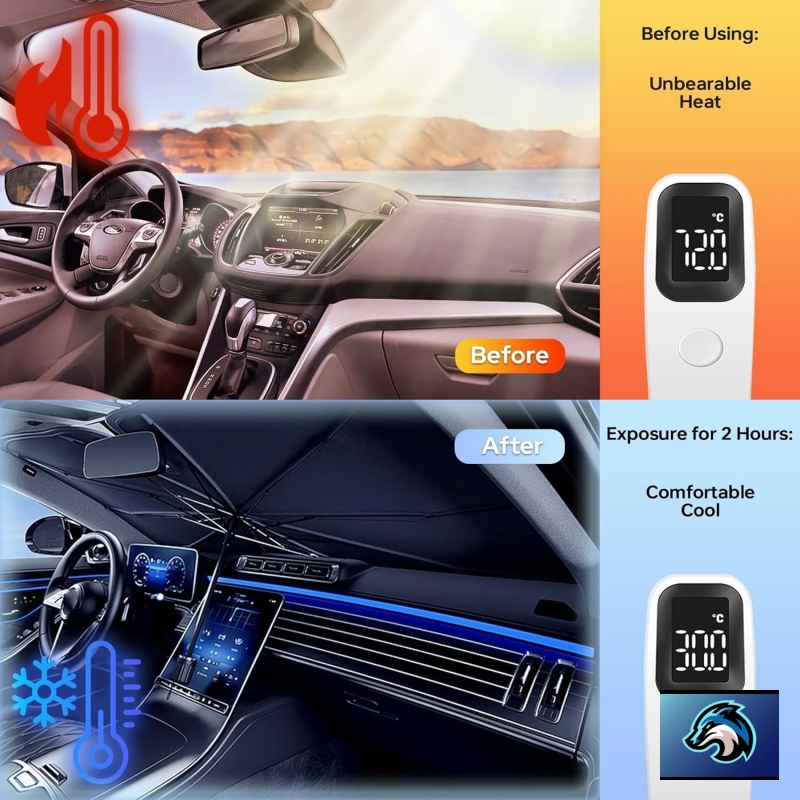 • High-Quality Materials: Un1que Car windshield sun shade umbrella is made of high-density cloth, with titanium silver coating that reflects heat with a UPF 50+ rating. 10 bones Skeletons, which are strong, durable, and corrosion-resistant.