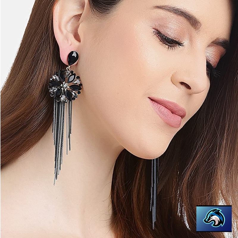 Crystal Studded Tassel Earings Jewellery