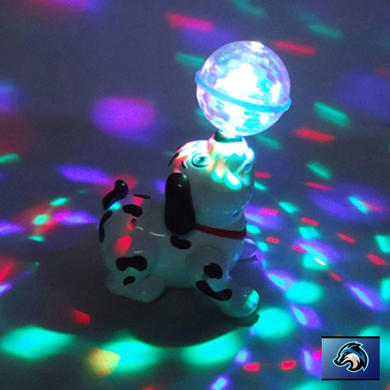 • Cable World A rotating wheel at the base of the dog enables it to move around. Features lights and music. This cute puppy toy can move with its wheel and change the direction if it meets barrier.Cable World