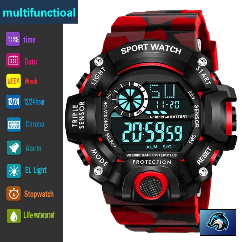 • Multi-Functions: Complete Calendar, Chronograph, Week Display, LED Display, Countdown ; Movement: Digital Movement ; Band Material Type: Silica gel