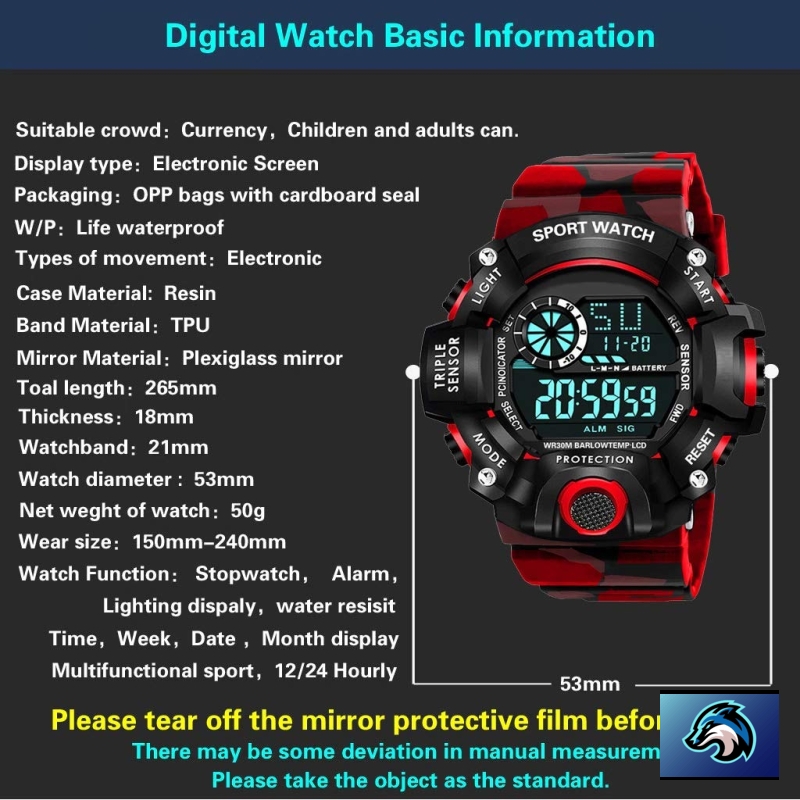 • Watch Movement Type: Quartz , Watch Display Type: Digital & Day and Date