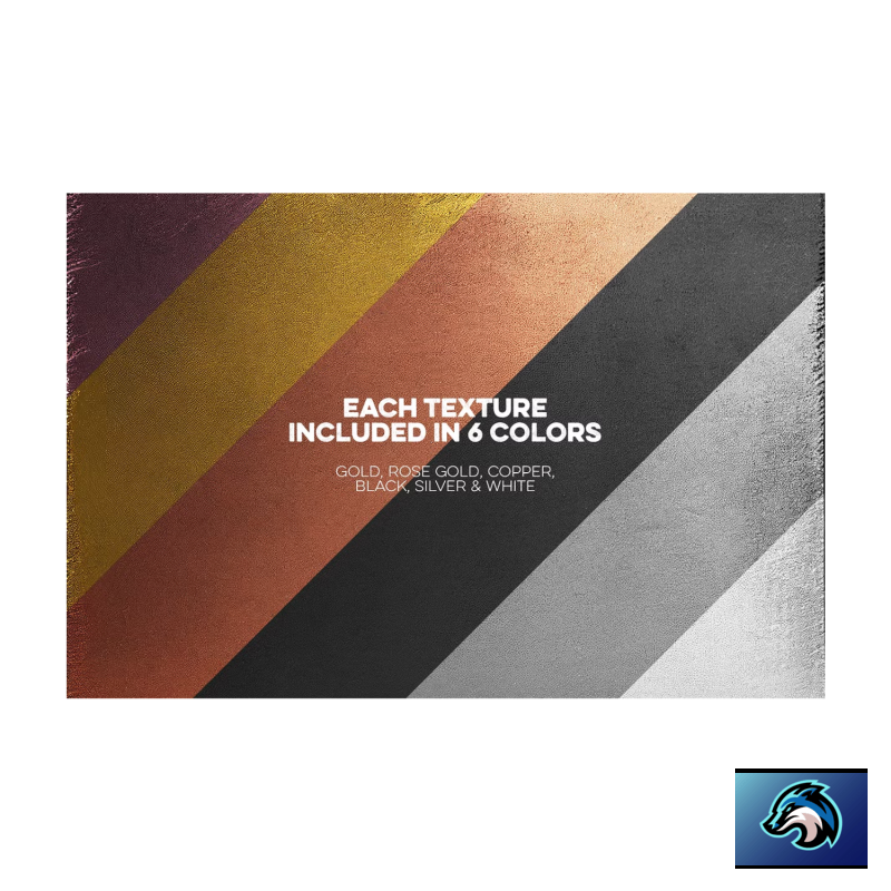 Las texturas doradas y metálicas incluidas en este paquete son simplemente impresionantes: desde láminas de oro brillantes hasta plata y cobre brillantes, cada textura captura la belleza de los acabados metálicos en todo su esplendor. Estas texturas son perfectas para agregar un toque de glamour a invitaciones, tarjetas de presentación, carteles, gráficos para redes sociales y más. Y eso no es todo: el paquete también incluye varias texturas y patrones de papel.