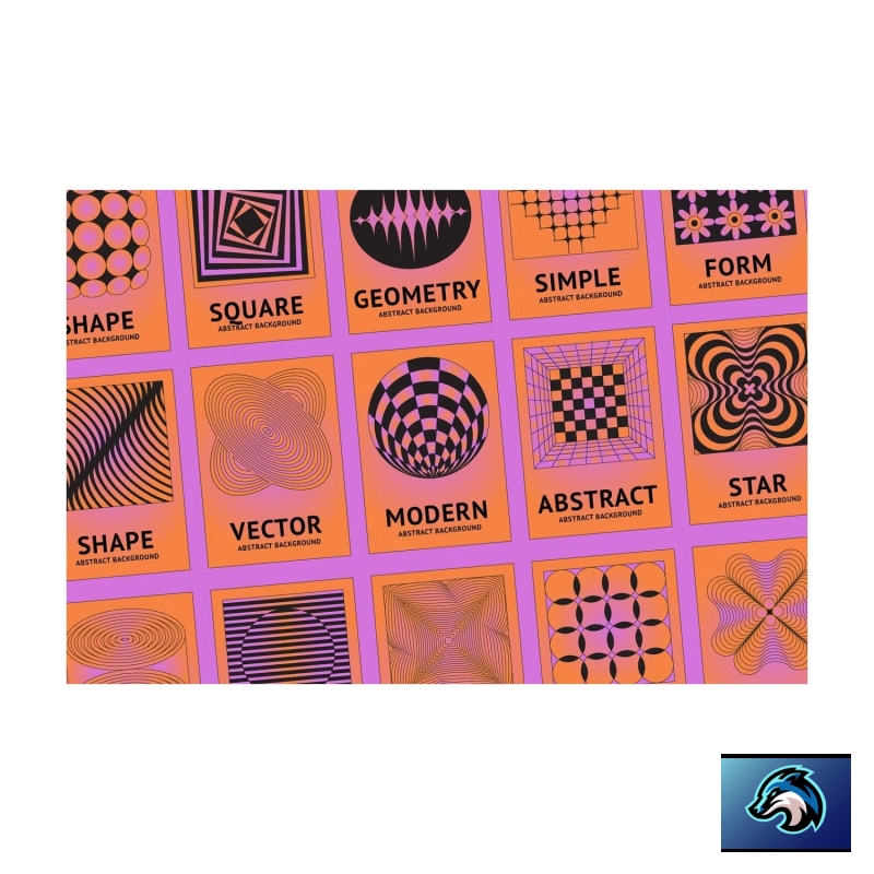 Geometría abstracta : la nueva colección con elementos gráficos vectoriales: plantillas de logotipos, marcos e impresiones. Ilustraciones decorativas y minimalistas. 150 elementos en 2 variaciones de color para sus proyectos de diseño