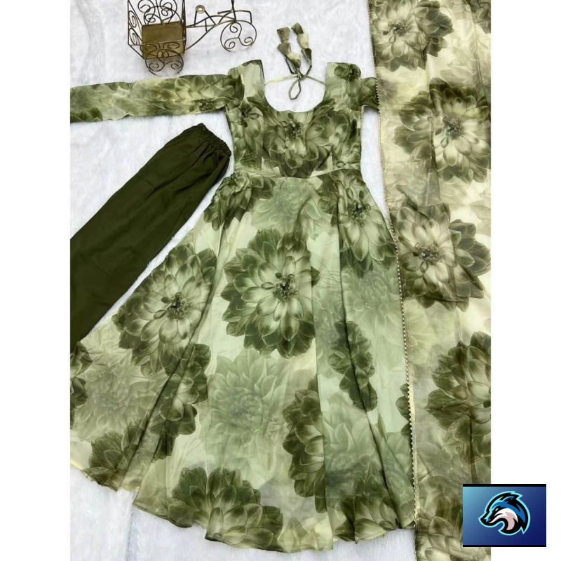 FASHIONABAL TABBY ORGANZA SILK Servicio en PANTALÓN DE VESTIR CON ESTAMPADO 3D CON DUPATTA VERDE