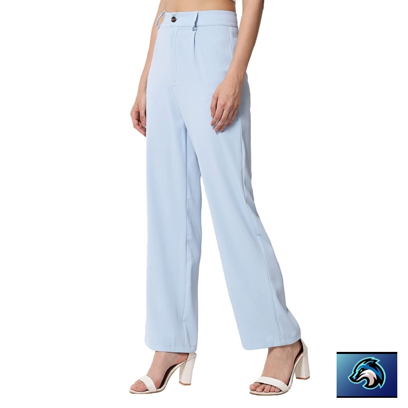 Kotty Women Solid Polyester Blend Blend Blue pantalón