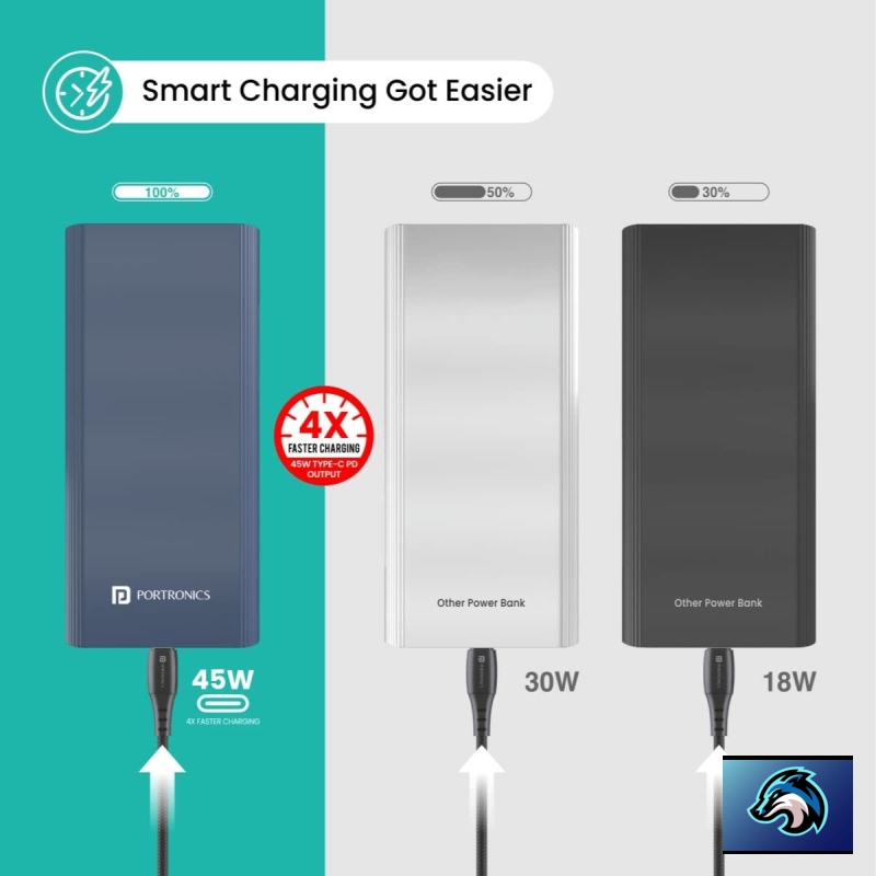 Portronics Power 45 20000mAh Power Bank para computadora portátil/móvil con 45w de carga rápida