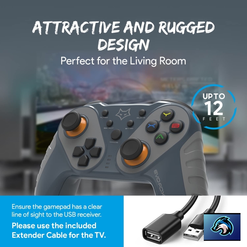 • The EvoFox Elite Ops Wireless Gamepad with Type C Charging is the ideal Android TV Gamepad. With all Android TVs supporting at least basic Gaming, a Gamepad at home is a must. Use the provided USB Extender Cable on your TV to ensure optimal wireless performance.