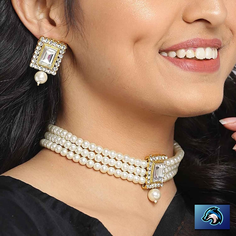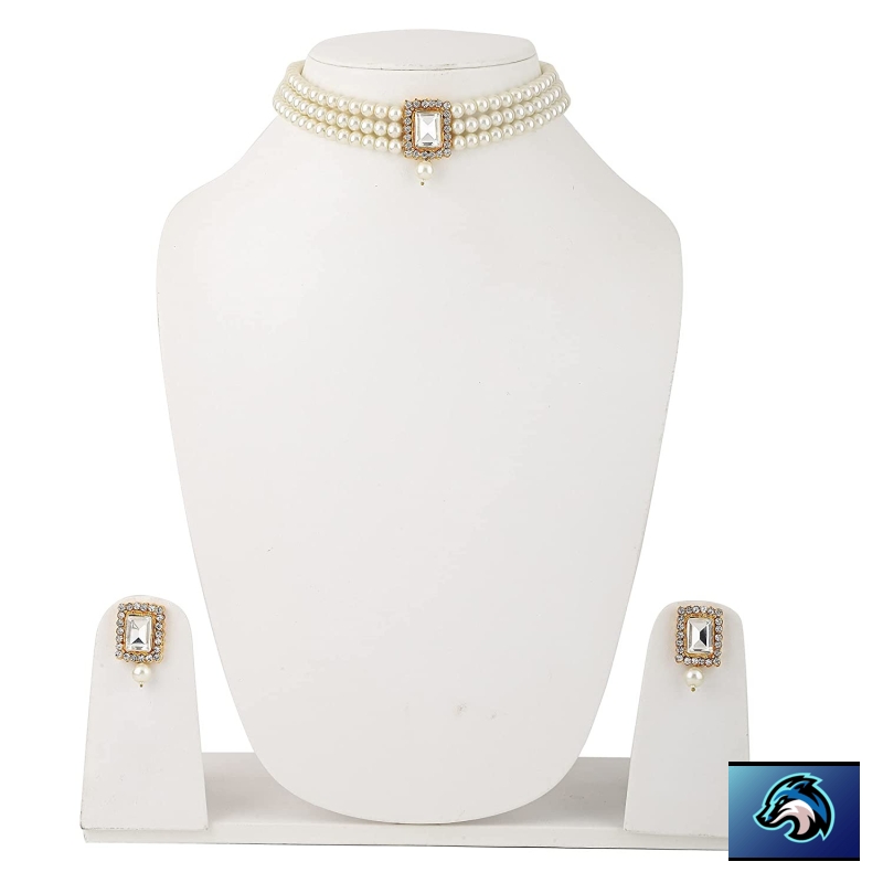 • Stylish pearl choker necklace set for women. You will always be the center of attraction by wearing this jewelry set. Wear it with any traditional or modern outfit for bringing elegance to you.