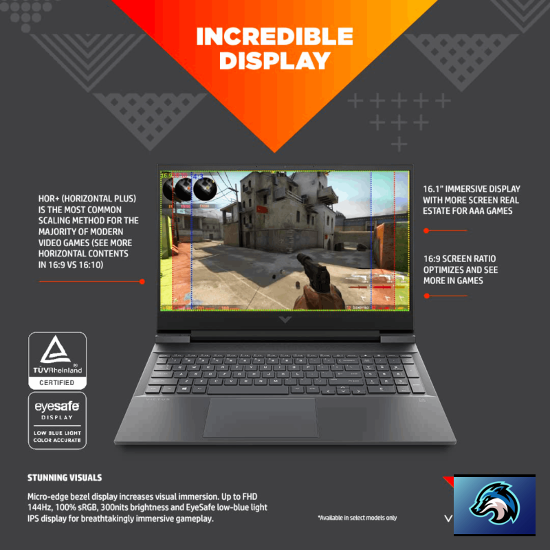 • Immersive Display– Enjoy vibrant, crystal-clear images with a 16.1” diagonal FHD IPS micro-edge display with anti-glare technology and a 144Hz refresh rate. It also comes with Low Blue Light, 300 nits.