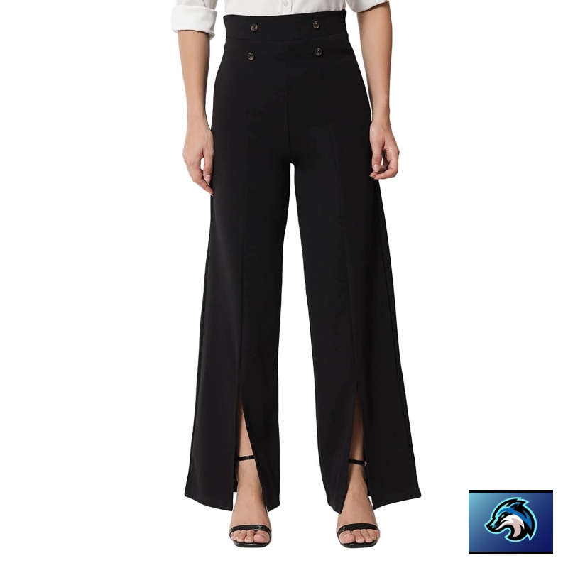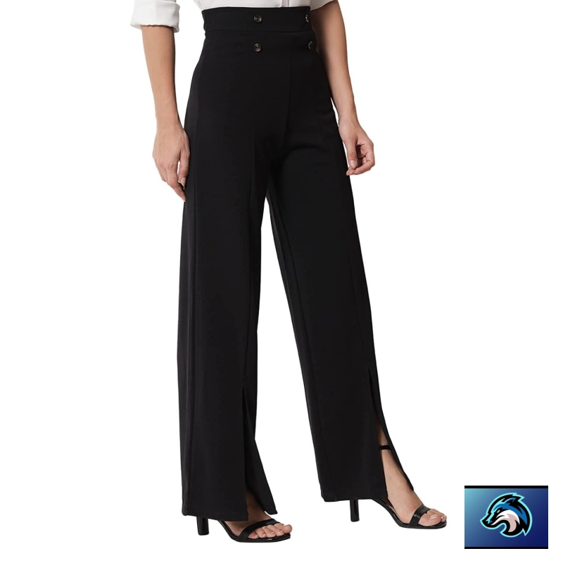 KOTTY Women Regular Length Jade Black Solid Trousers
