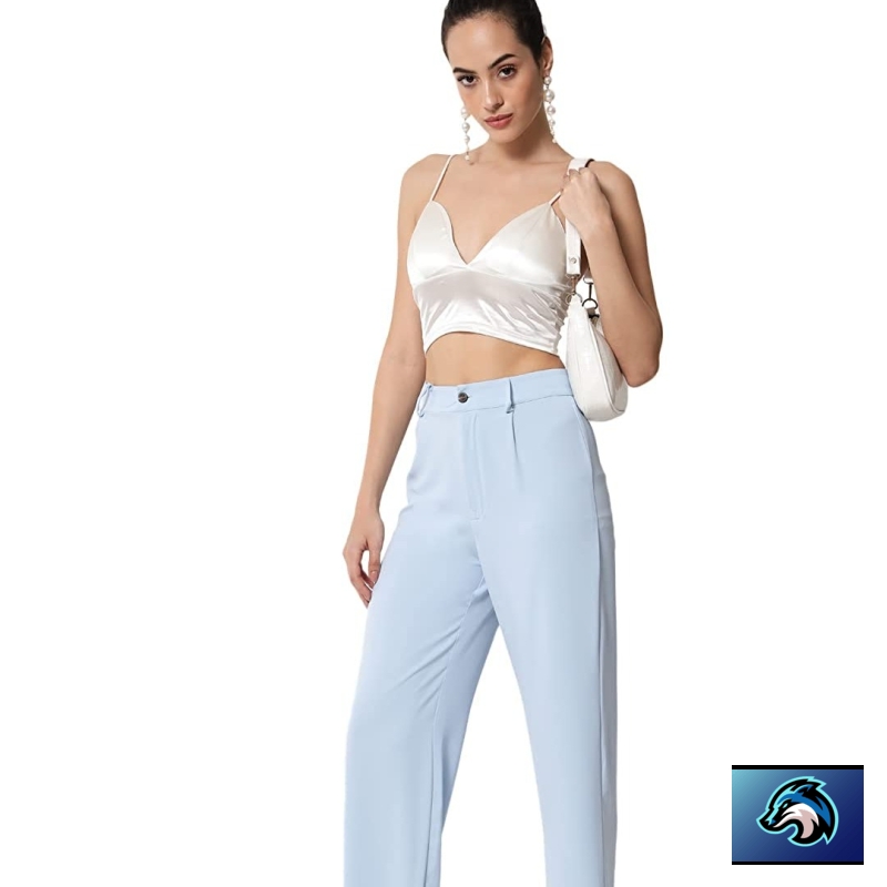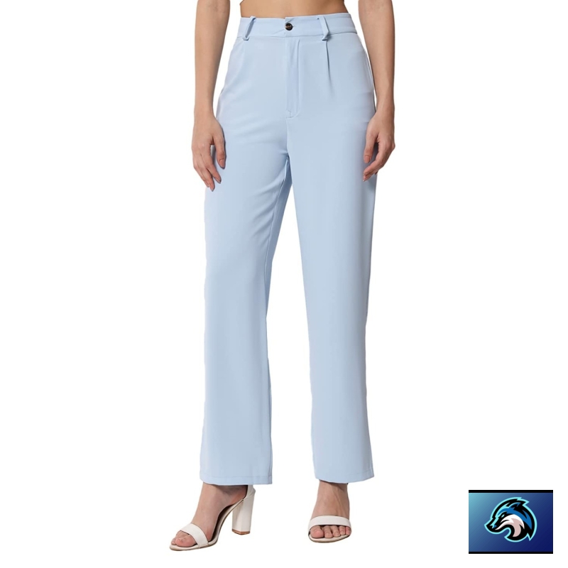 KOTTY Women Solid Polyester Blend Light Blue Trouser