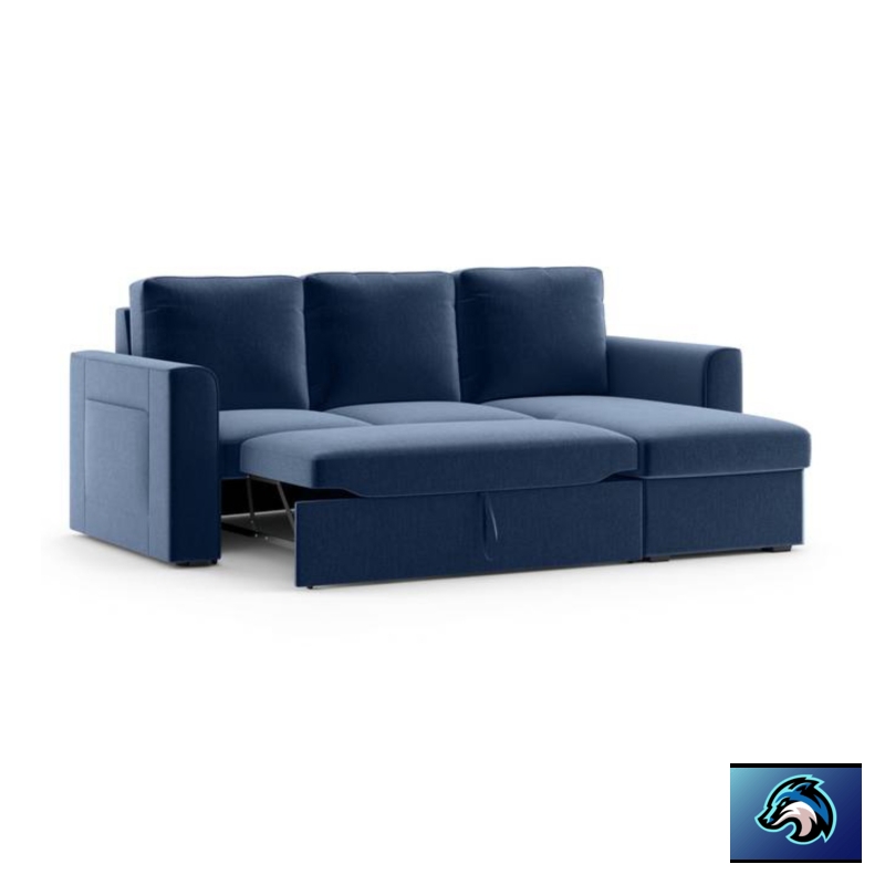 Kowloon Sectional 3 Seater Pull Out Sofa Cum Bed In Lapis Blue Colour