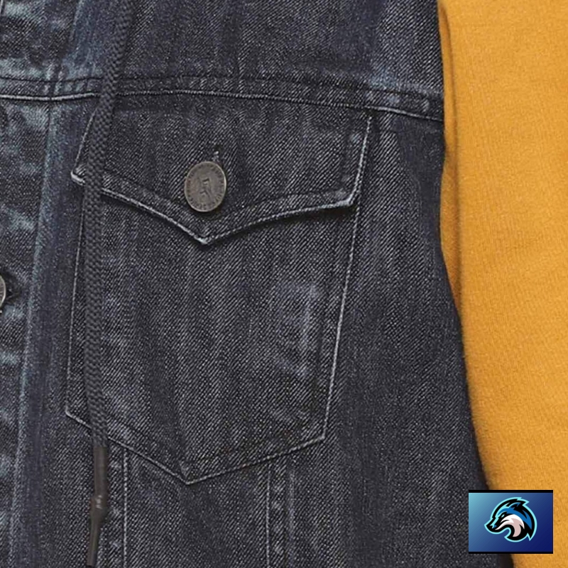 Charcoal washed colourblocked windcheater denim jacket, has a hooded, 4 pockets ,has a button closure, long sleeves, straight hemline, cotton lining