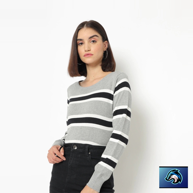 Striped Round Neck Casual Women Multicolor Sweater