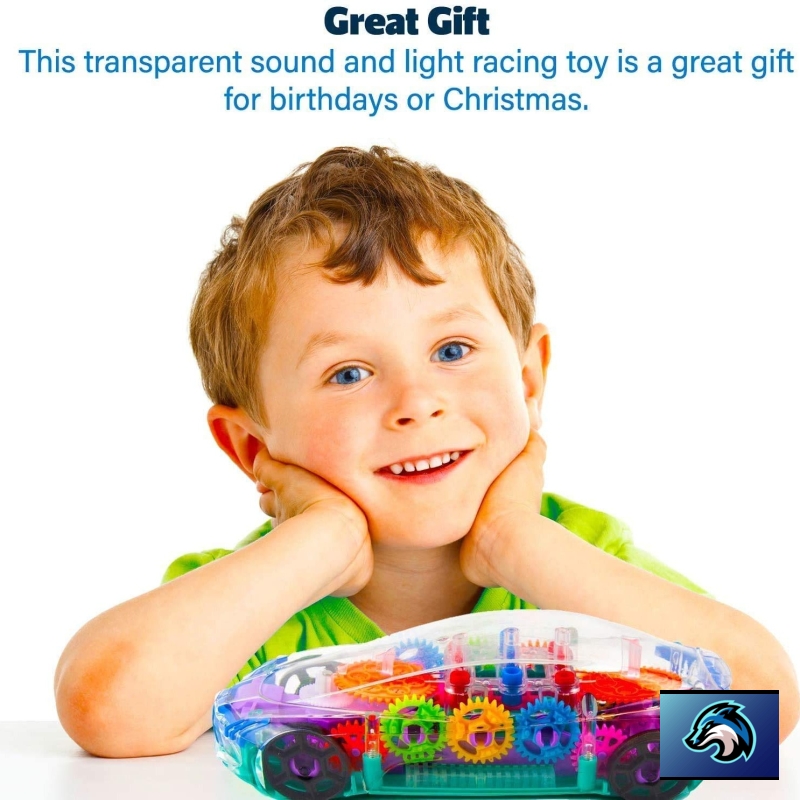 • Transparent Concept Racing Car with 3D Flashing Lights car with functions: Forward/ Backward, Stop. Unique Design - Transparent design, one Can see the gear inside, helps the kids to know mechanical concept.