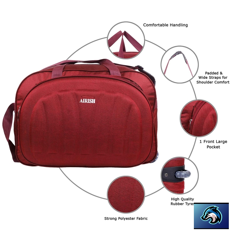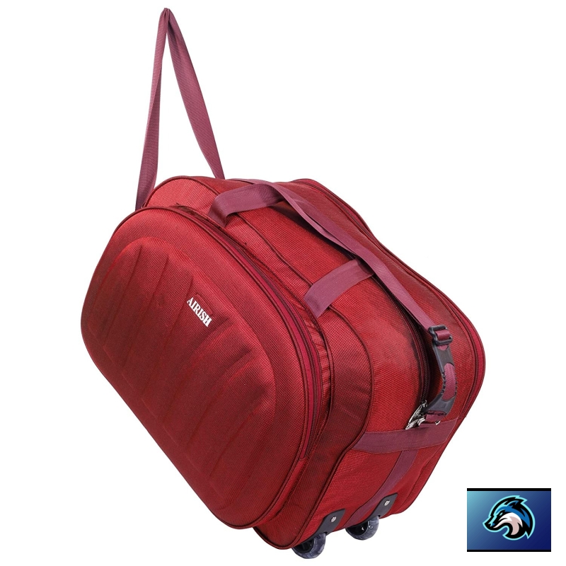 Airish Fashion Polyester Lightweight 50 L Luggage Travel Duffel Bag with 2 Wheels (Red)