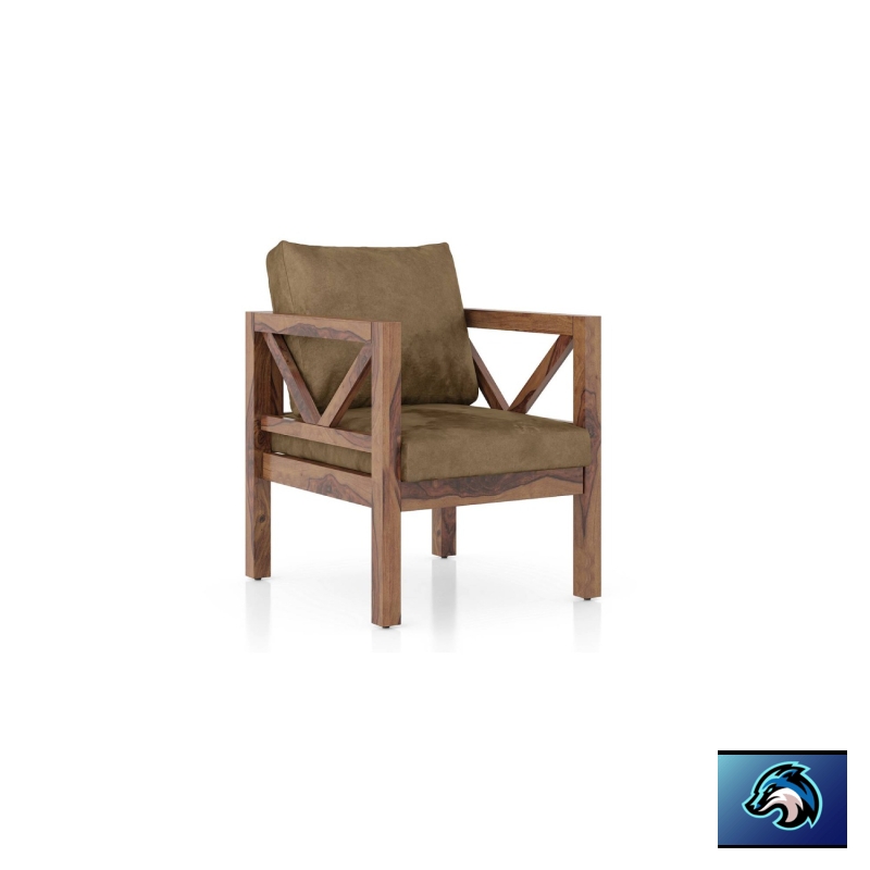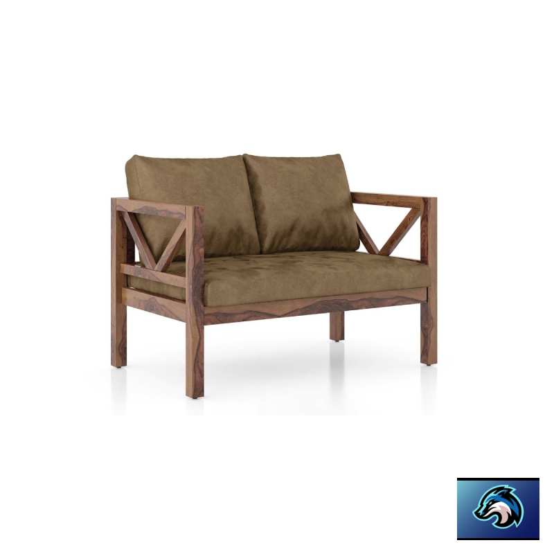Alden Wooden Sofa -Finish- Teak (Peanut Brown Velvet)