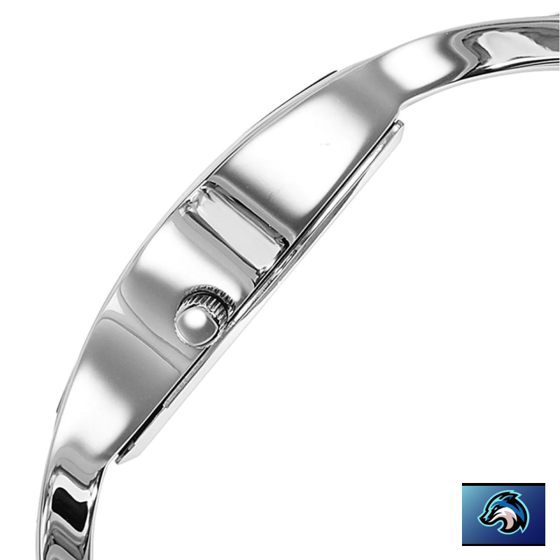 ساعة تناظرية مع حزام من الستانلس ستيل