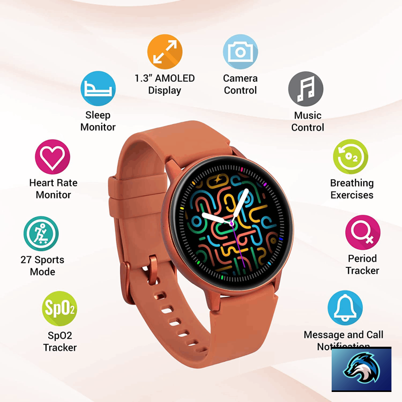 • [Complete Health Suite] With Blood Pressure Monitor, 24 X7 Heart rate monitor, SPO2 (Blood Oxygen Level) Tracker and Women's Health tracker.;[Sleep Monitoring] Let the watch keep a check on your sleep health with an active sleep monitor.