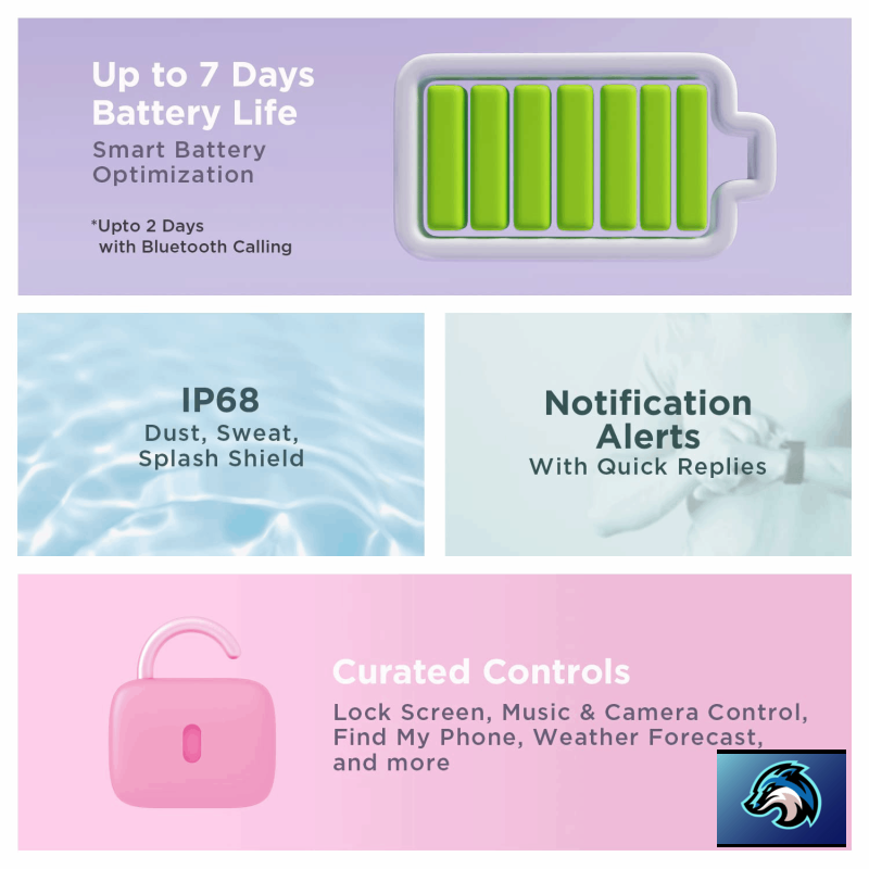 20 inbuilt Watch Faces- Be Spoilt for choice, with 20+ inbuilt watch faces. Find the one that matches your vibe with over 100+ on the cloud.