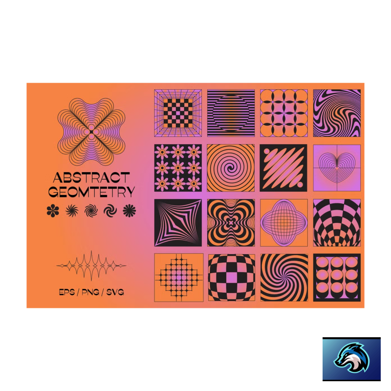Geometría abstracta : la nueva colección con elementos gráficos vectoriales: plantillas de logotipos, marcos e impresiones. Ilustraciones decorativas y minimalistas. 150 elementos en 2 variaciones de color para sus proyectos de diseño