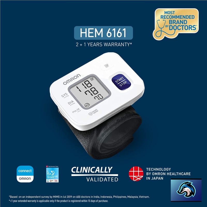 Omron HEM 6161 Monitor de presión arterial de muñeca completamente automática con tecnología IntelliSense