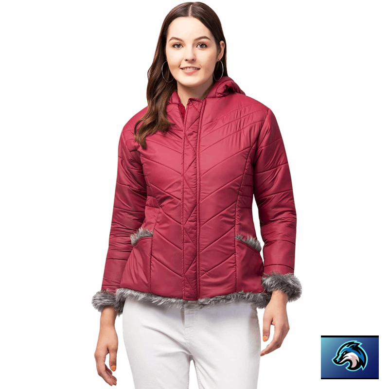 Women's & Girl's Winter Winter Winter Full manga Solid Holdie Bomber Chaqueta y abrigo