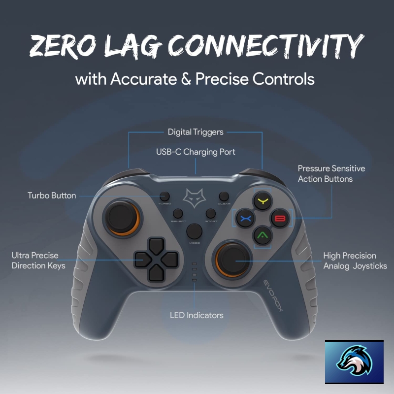 • The EvoFox Elite Ops Wireless Gamepad with Type C Charging is the ideal Android TV Gamepad. With all Android TVs supporting at least basic Gaming, a Gamepad at home is a must. Use the provided USB Extender Cable on your TV to ensure optimal wireless performance.