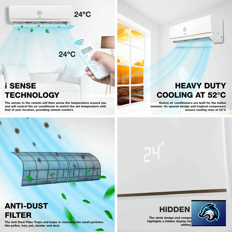 • Capacity (1 Ton): Suitable for small-sized rooms ( up to 110 sq. ft), 524.03 CFM & Ambient Temperature: 52℃