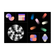 Set of 70 gradient blend objects, from simple universal logos to quirky and funky design elements