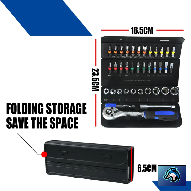 • Comprehensive Kit: Includes a variety of sockets, bits, and a sturdy hand ratchet wrench, perfect for tackling a wide range of car repair tasks.