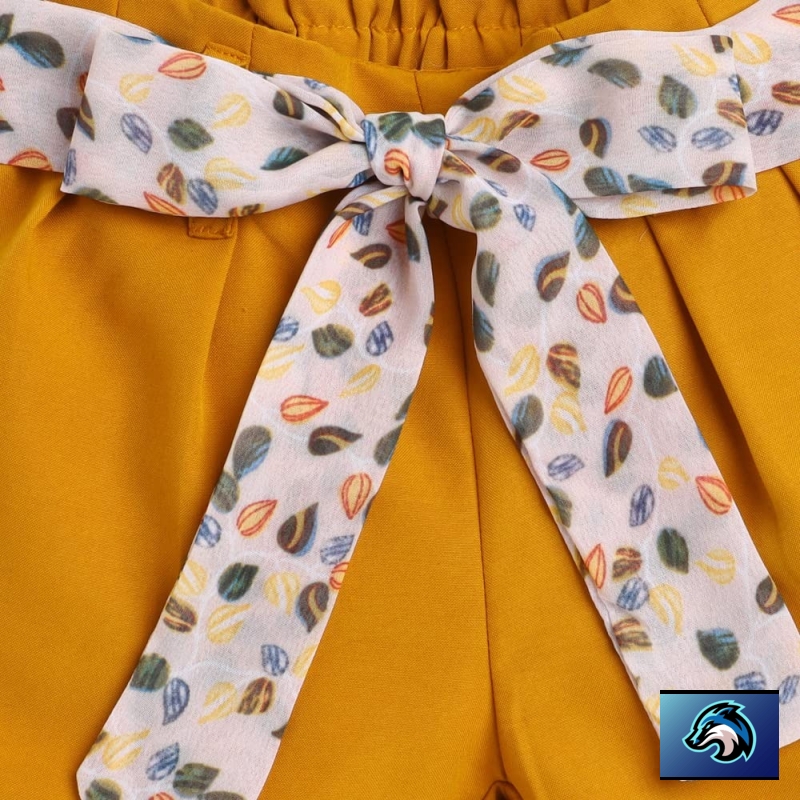 Hopscotch Girls Polyester Floral Print Blouse and Shorts Set in Yellow Color