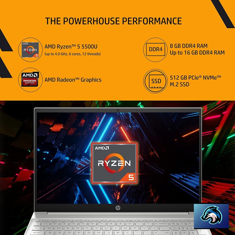 • Processor: AMD Ryzen 5 5500U (up to 4.0 GHz max boost clock, 8 MB L3 cache, 6 cores, 12 threads)