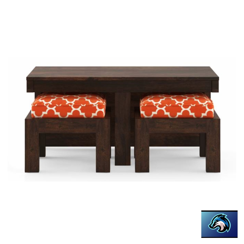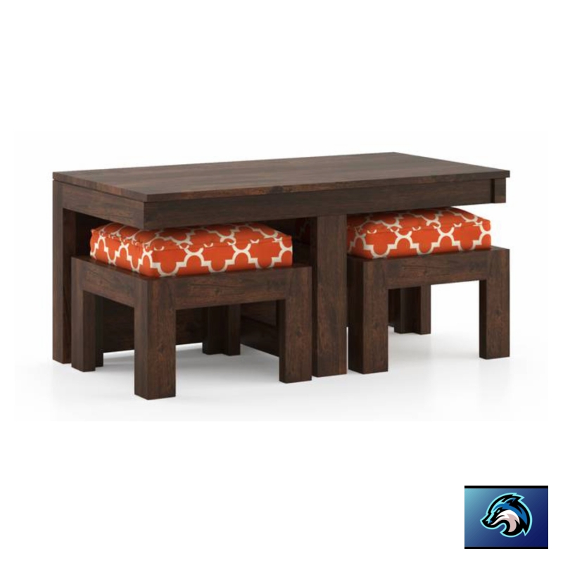 • Comprises a table and two nested stools