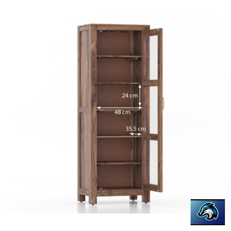 • Made of high quality Sheesham wood. Glass panel cabinet door. MDF back panel.