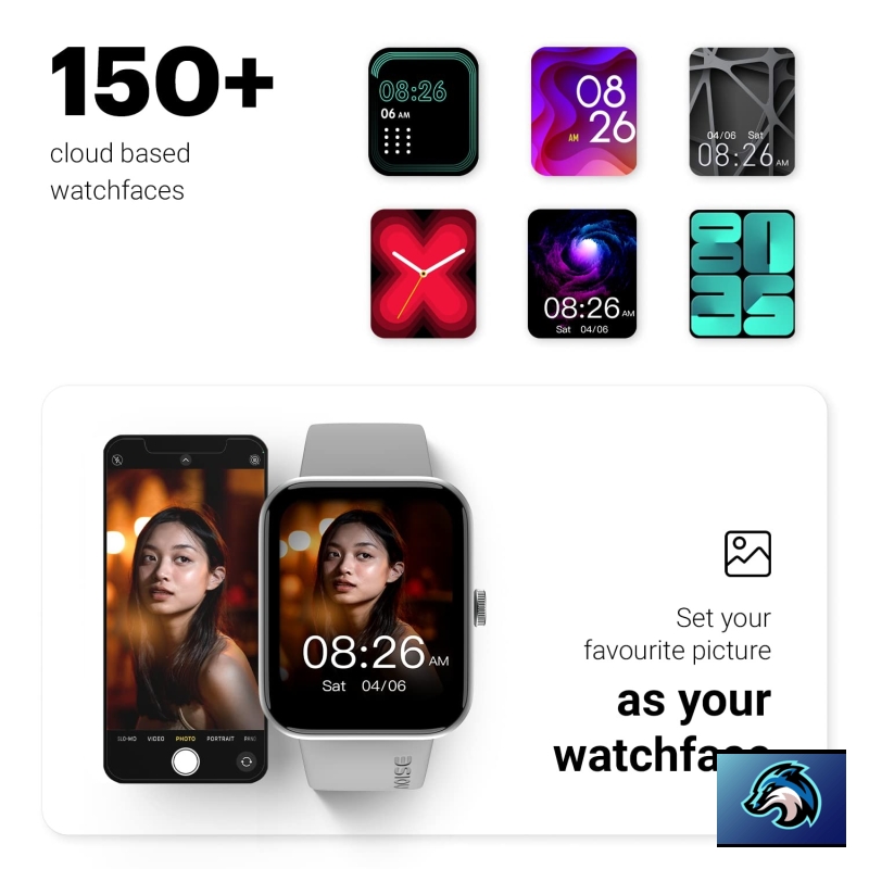 • Sharp and bright display: The 1.69’’ TFT display with 240*280px and 550 nits brightness ensures a visual treat every time you look at the watch.