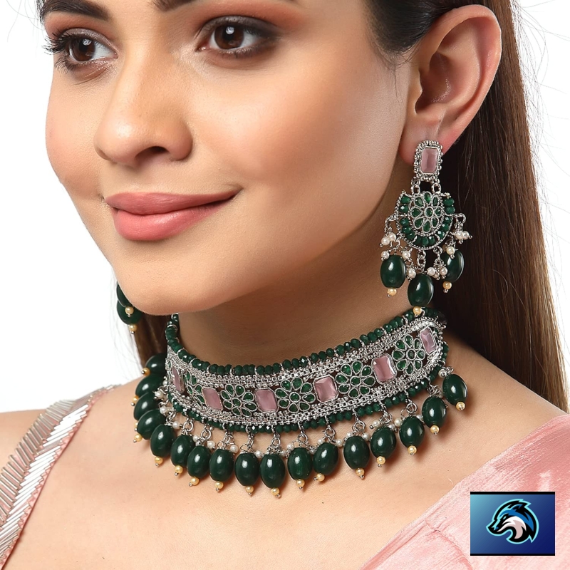 MATERIAL & CRAFTSMANSHIP: Finest quality stones and environmentally friendly non precious Metals are used for making the jewellery set. It is safe for wearing for long hours. Exquisite hand work is required since some crystals are too small to pick by fingers, really hard & time consuming.