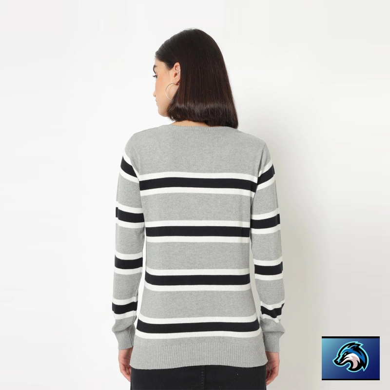 Striped Round Neck Casual Women Multicolor Sweater