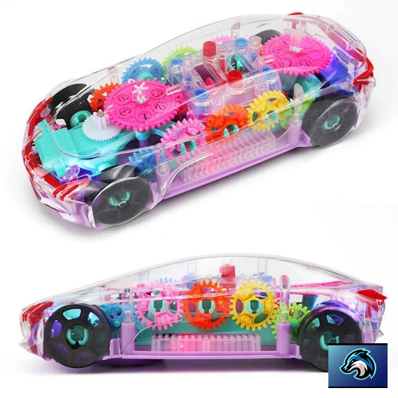 • Transparent Concept Racing Car with 3D Flashing Lights car with functions: Forward/ Backward, Stop. Unique Design - Transparent design, one Can see the gear inside, helps the kids to know mechanical concept.