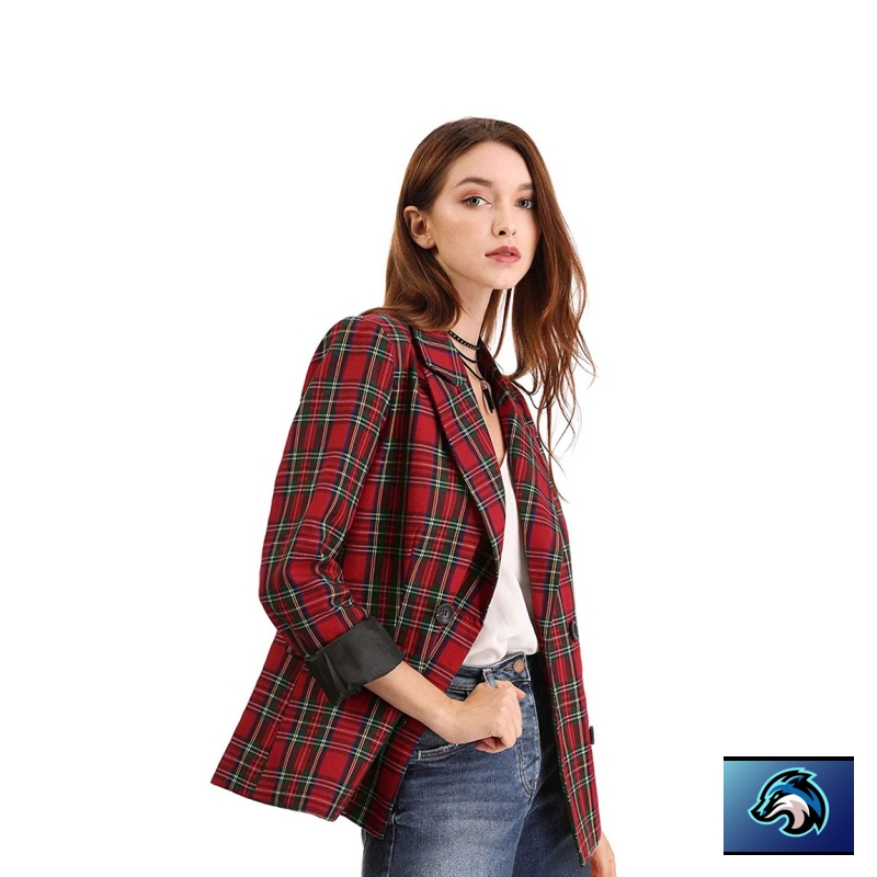 Women Red & Black Checked Pure Cotton Single-Breasted Casual Blazer